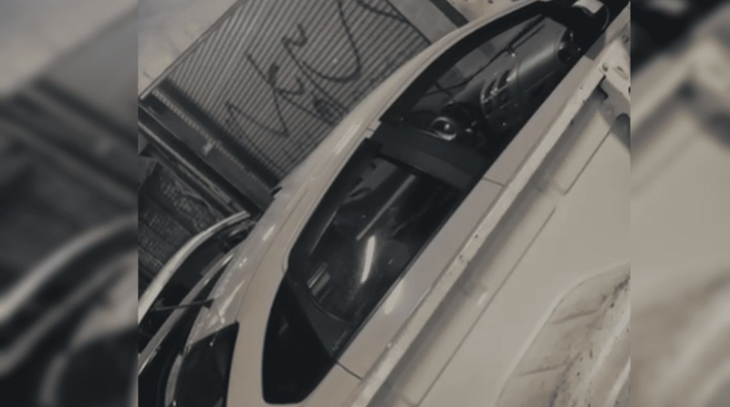 Cena inusitada aconteceu em Fiat Grand Siena branco, chamando atenção de clientes em bar.