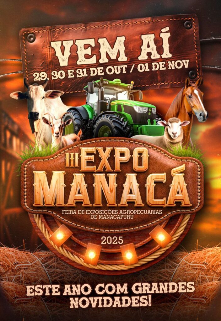 A Prefeitura de Manacapuru anunciou nesta quarta-feira (17) as datas oficiais da 3ª ExpoManacá: Feira de Exposições Agropecuárias de Manacapuru, que acontecerá entre os dias 29 de outubro e 1º de novembro de 2025. O evento, que já se consolidou como um dos maiores do interior do Amazonas, promete este ano trazer novidades e uma programação ainda mais diversificada.
