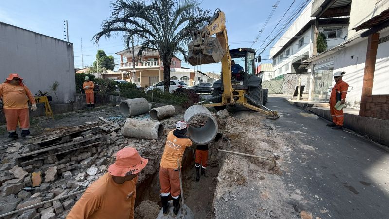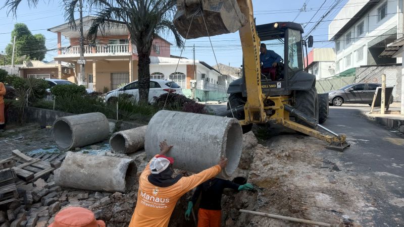 A Prefeitura de Manaus, por meio da Secretaria Municipal de Infraestrutura (Seminf), segue em fase final da implantação de uma nova rede de drenagem profunda na rua Oriental, bairro Aleixo, zona Centro-Sul. A obra, que já recebeu cerca de 100 metros de tubulação, avança nesta terça-feira, 2/9, com a instalação de mais 10 metros, e tem como objetivo garantir o escoamento adequado das águas pluviais e prevenir riscos à comunidade.