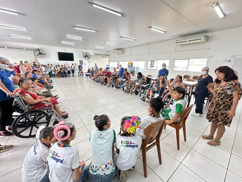 A Prefeitura de Manaus, por meio da Fundação de Apoio ao Idoso Dr. Thomas (FDT), realizou, nesta quinta-feira, 9/10, um encontro intergeracional que reuniu alunos do 4º ano da escola municipal José Carlos Martins Mestrinho e os residentes da instituição. A ação teve como objetivo estimular a troca de experiências, o respeito e a valorização entre gerações, fortalecendo vínculos afetivos e sociais.