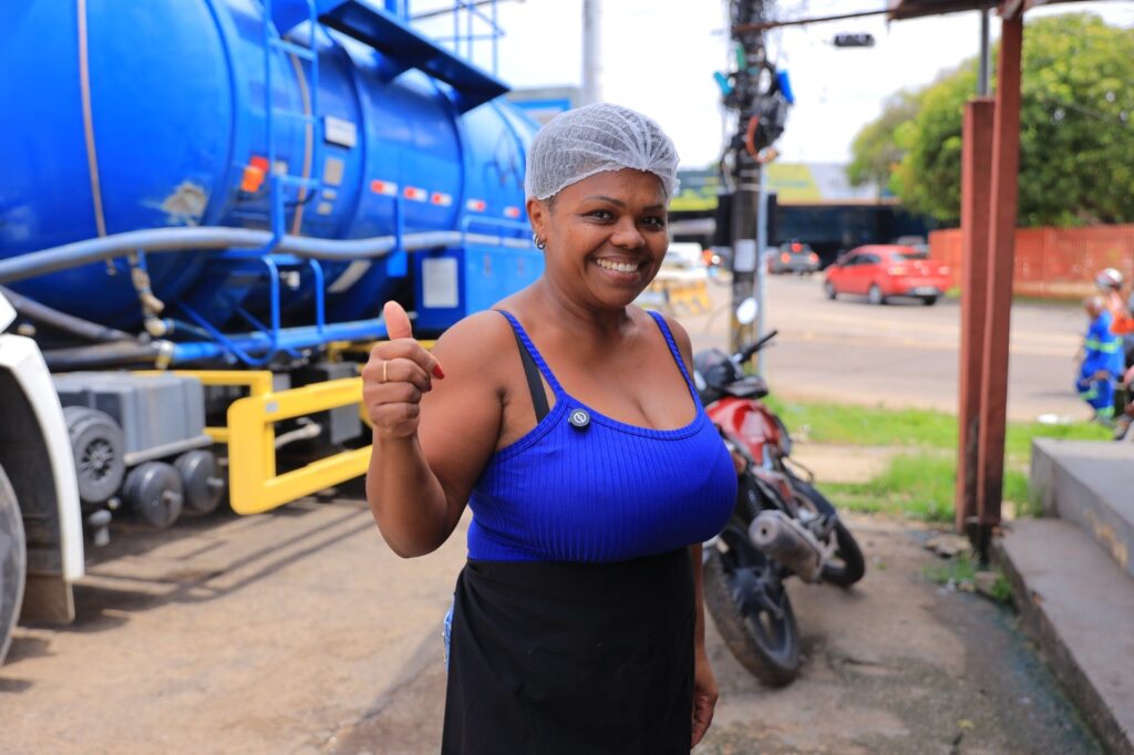 A comerciante Maria Gomes, de 47 anos, é proprietária de um restaurante que fica próximo à caixa coletora. Ela relatou sobre a ação benéfica da prefeitura na localidade, mas deixou o seu recado de conscientização para a população.