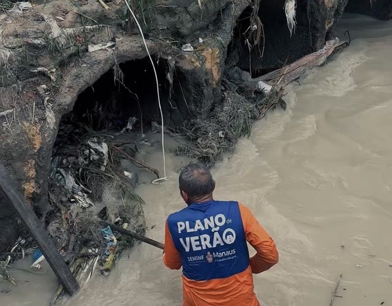 A Prefeitura de Manaus, por meio da Secretaria Municipal de Infraestrutura (Seminf), entrou em ação, no sábado, 24/1, na rua Elias Ramiro Bentes, no bairro Monte das Oliveiras, na zona Norte da cidade. As equipes do distrito de obras realizam uma operação de limpeza e desobstrução do sistema de escoamento de águas pluviais, necessária para permitir o pleno funcionamento da rede de drenagem profunda.