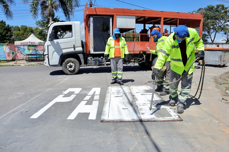 Prefeitura realiza mutirão no Colônia Antônio Aleixo e intensifica sinalização viária em todas as zonas de Manaus